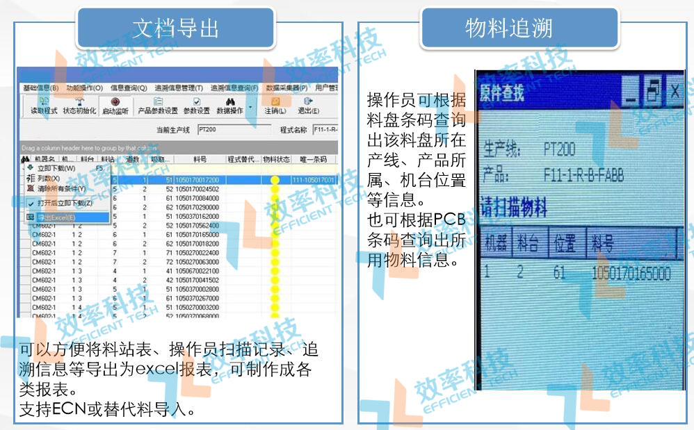 作業(yè)人員掃描料盤條碼,系統(tǒng)比對新舊料盤條碼是否相同從而確定物料的正確與否。