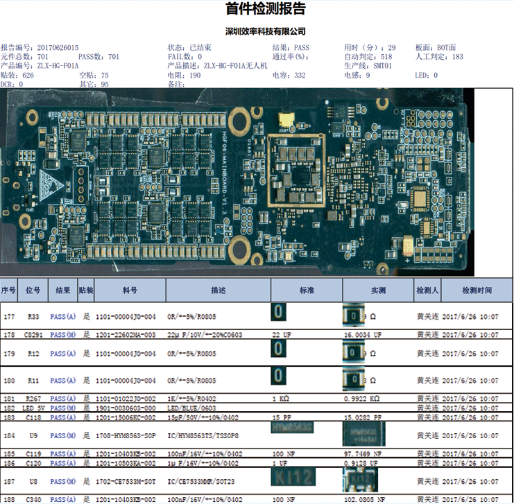 2.自動(dòng)生成完善的檢查報(bào)告:檢測(cè)完成可自動(dòng)生成完善的不可更改的檢測(cè)報(bào)告,方便追溯問(wèn)題源頭(每一個(gè)位號(hào)都有絲印對(duì)比圖及測(cè)量值);同時(shí)也省去了人工做報(bào)告的繁瑣和時(shí)間;真實(shí)反映實(shí)際情況,避免了人為修改和失誤。