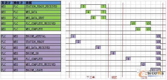 如發(fā)動機(jī)上線工位,MES給PLC下發(fā)工單,過程可參考下圖: