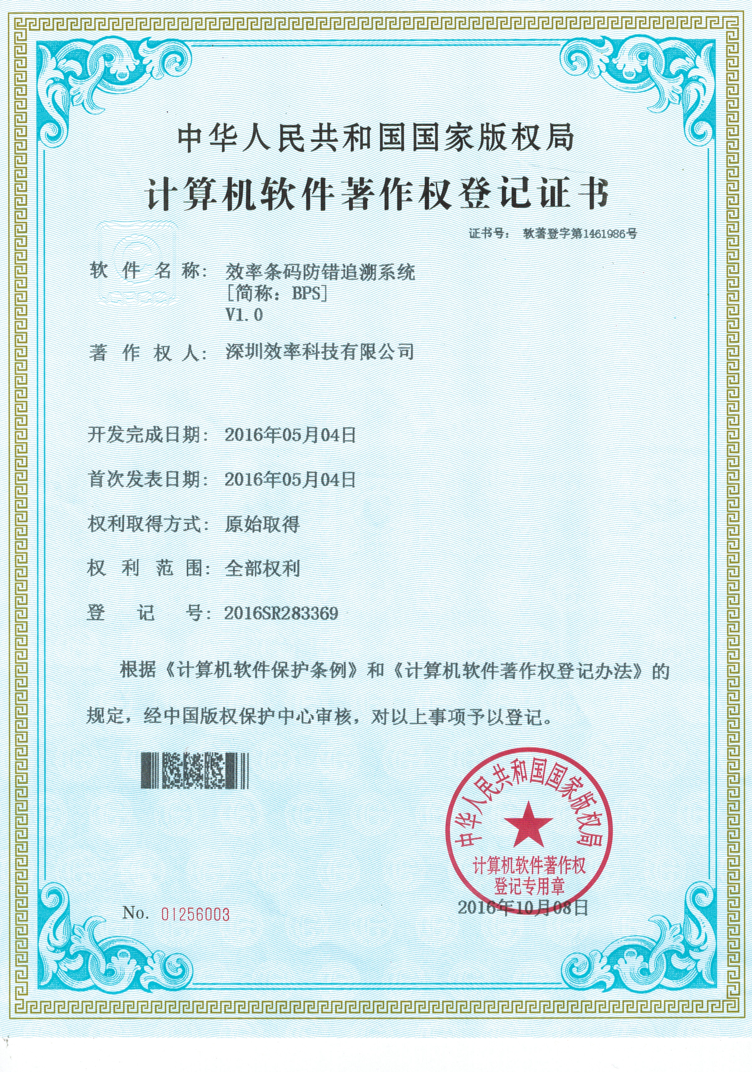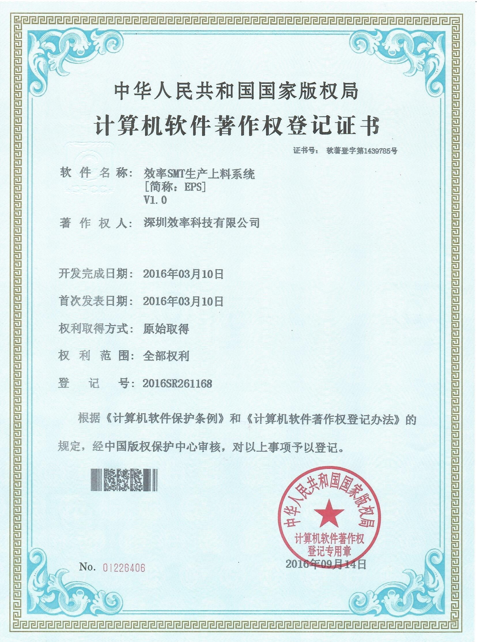 EPS條碼防錯追溯系統(tǒng)著作權(quán)