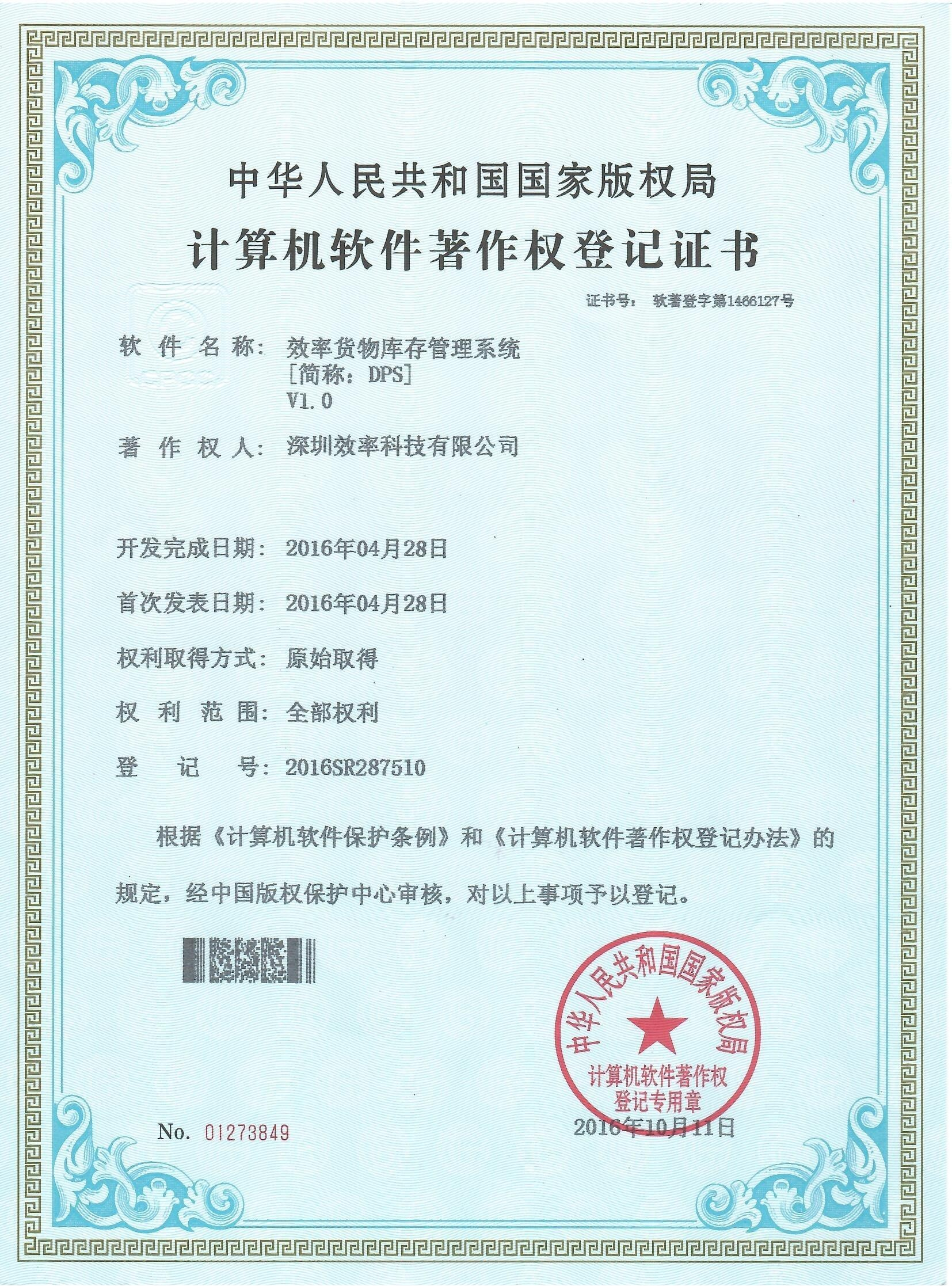 DPS貨物庫存管理系統(tǒng)軟著證書