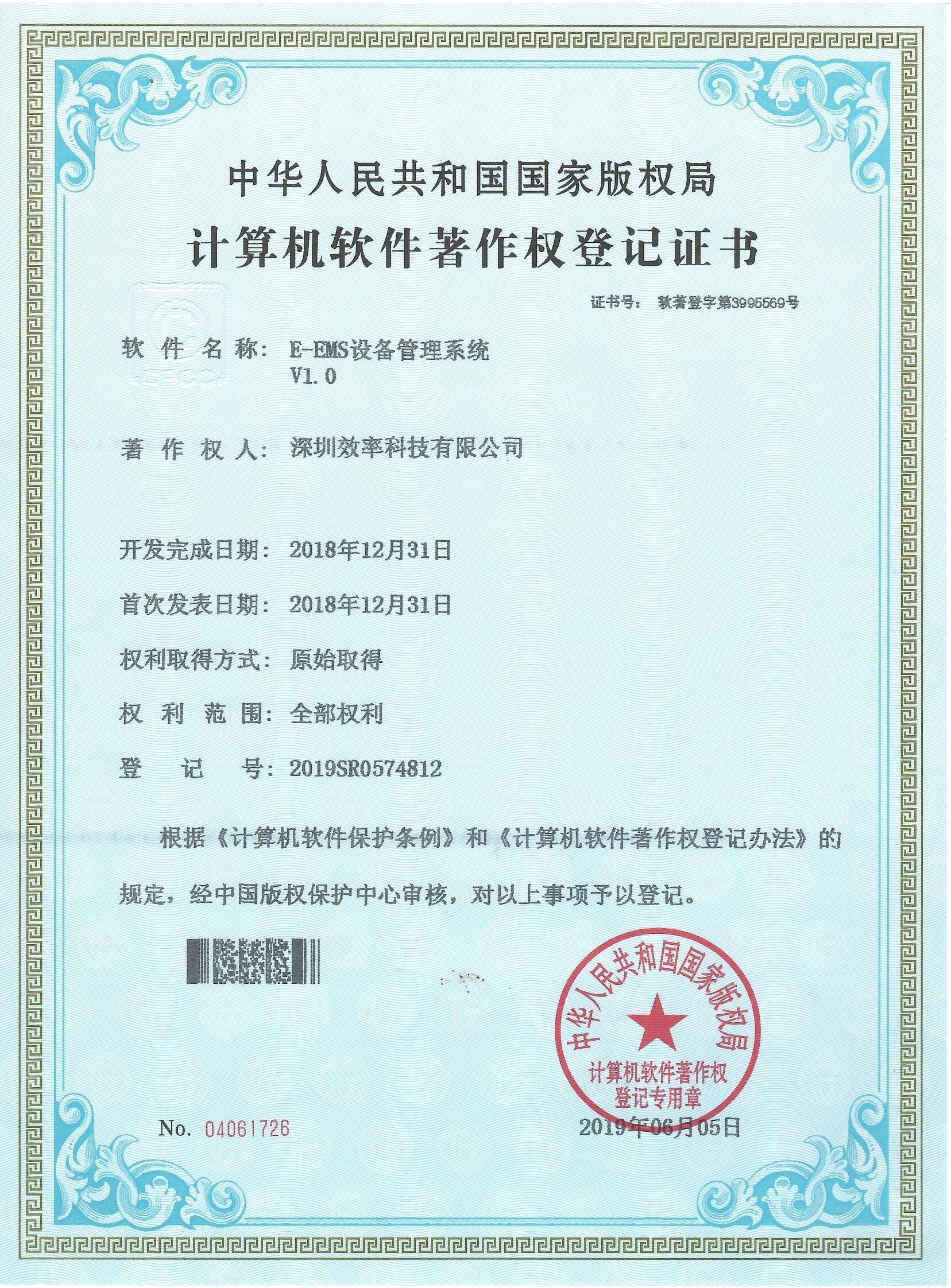 EMS設(shè)備管理系統(tǒng)軟著證書