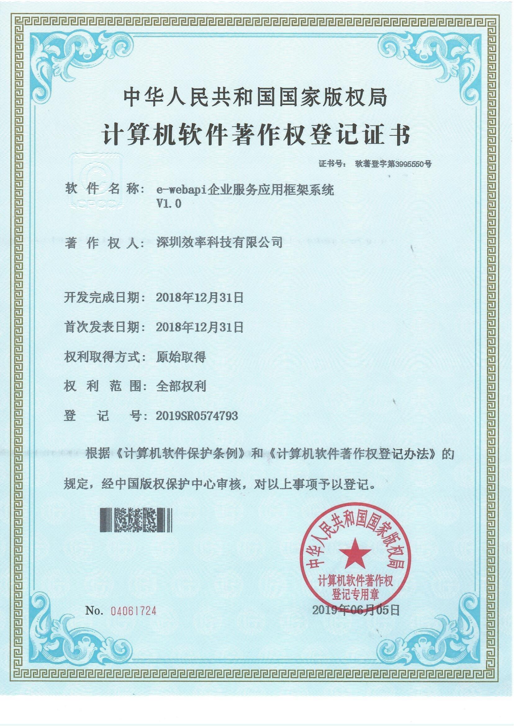 e-webapi企業(yè)服務應用框架系統(tǒng)軟著證書