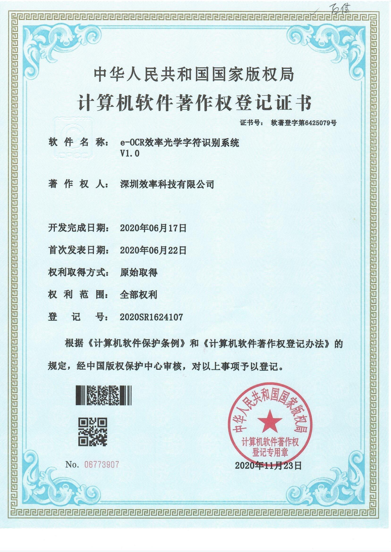 OCR效率光學字符識別系統(tǒng)軟著證書