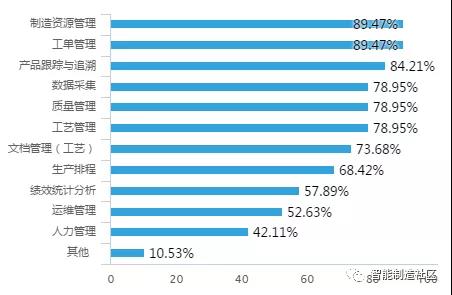 從反饋結(jié)果看,制造資源管理、工單管理幾乎是必選功能,其次是 產(chǎn)品跟蹤與追溯,數(shù)據(jù)采集,質(zhì)量管理,工藝管理等核心模塊