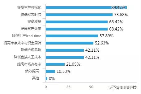 從反饋結(jié)果看,“提高生產(chǎn)可視化”無(wú)疑是有較大的收益,其次是“降低報(bào)表時(shí)滯”,排在第三位的是“提高質(zhì)量”與“提高資產(chǎn)效率”。
