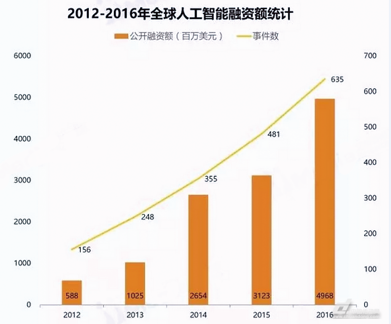 根據(jù)風投調研機構CBinsights統(tǒng)計的數(shù)據(jù),截至2016年12月20日,全球人工智能領域融資事件數(shù)已達635宗,預計2016全年將達655宗,總融資額將達5.1億美元,見圖1。