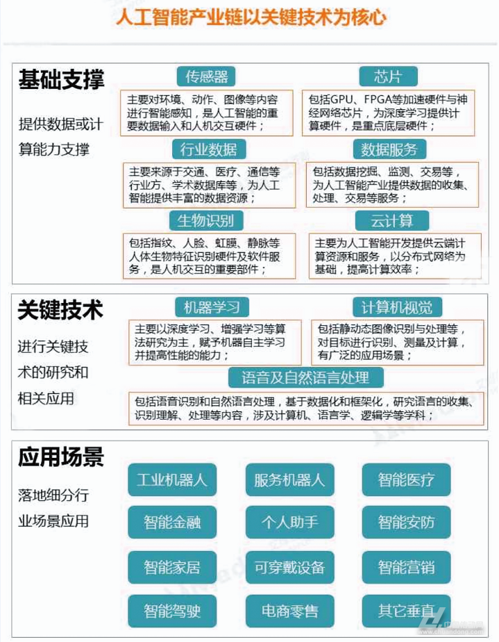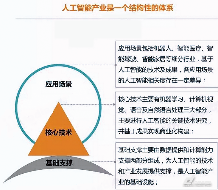 人工智能產業(yè)是指以人工智能關鍵技術為核心的,由基礎支撐和應用場景組成的,一個覆蓋領域非常廣闊的產業(yè),與人工智能的學術定義不同,人工智能產業(yè)更多的是經(jīng)濟和產業(yè)上一種概括。