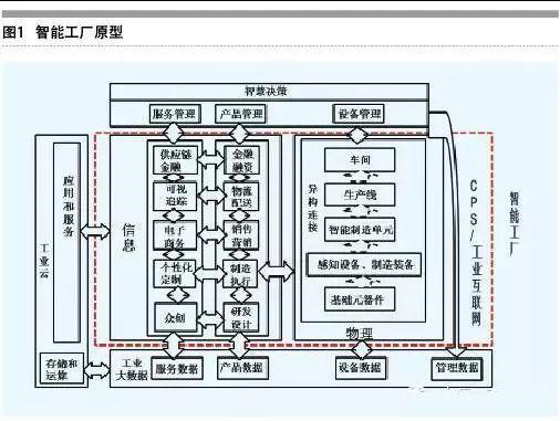 企業(yè)基于CPS和工業(yè)互聯(lián)網(wǎng)構(gòu)建的智能工廠原型,主要包括物理層、信息層、大數(shù)據(jù)層、工業(yè)云層、決策層。其中,物理層包含工廠內(nèi)不同層級(jí)的硬件設(shè)備,從小的嵌入設(shè)備和基礎(chǔ)元器件開始,到感知設(shè)備、制造設(shè)備、制造單元和生產(chǎn)線,相互間均實(shí)現(xiàn)互聯(lián)互通。以此為基礎(chǔ),構(gòu)建了一個(gè)“可測(cè)可控、可產(chǎn)可管”的縱向集成環(huán)境。信息層涵蓋企業(yè)經(jīng)營(yíng)業(yè)務(wù)各個(gè)環(huán)節(jié),包含研發(fā)設(shè)計(jì)、生產(chǎn)制造、營(yíng)銷服務(wù)、物流配送等各類經(jīng)營(yíng)管理活動(dòng),以及由此產(chǎn)生的眾創(chuàng)、個(gè)性化定制、電子商務(wù)、可視追蹤等相關(guān)業(yè)務(wù)。在此基礎(chǔ)上,形成了企業(yè)內(nèi)部?jī)r(jià)值鏈的橫向集成環(huán)境,實(shí)現(xiàn)數(shù)據(jù)和信息的流通和交換。