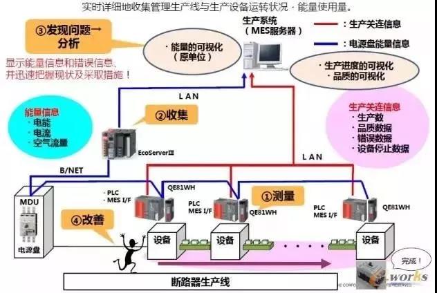 施耐德電氣的Ecostructure平臺提供了企業(yè)能效管理的整體解決方案;三菱電機則提出了能源JIT理念,福山制作所對空調系統(tǒng)、空壓機、鍋爐等耗能設備進行重點監(jiān)控,對于非生產時間的能耗進行追溯,對生產線每個工位的能耗進行檢測,將節(jié)能的責任分配到班組,從而節(jié)約能源。